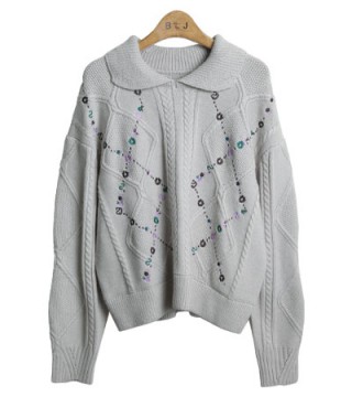 - KN9305 flower embroidery collar knit top(ÇÑÁ¤¼ö·®)