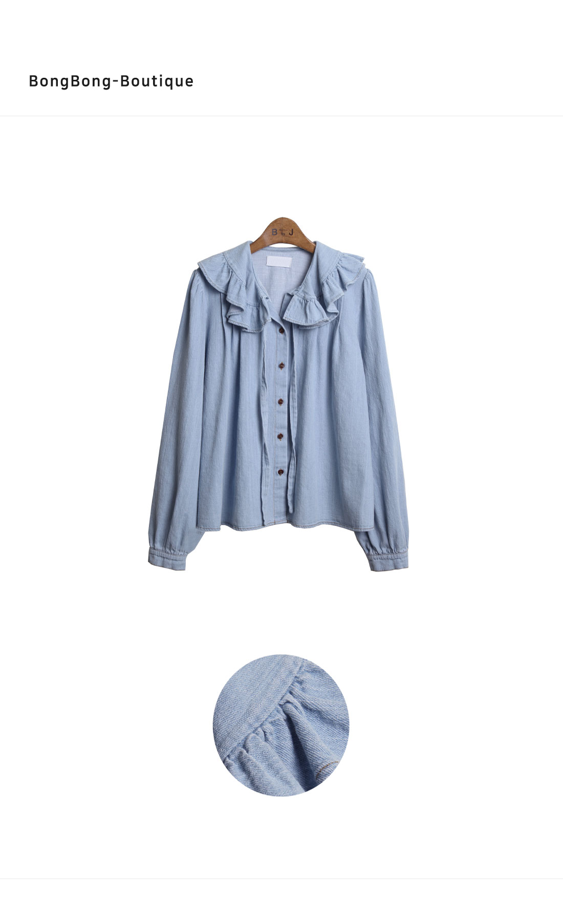 BL4850 VANE.string ruffle neck soft cotton denim BL